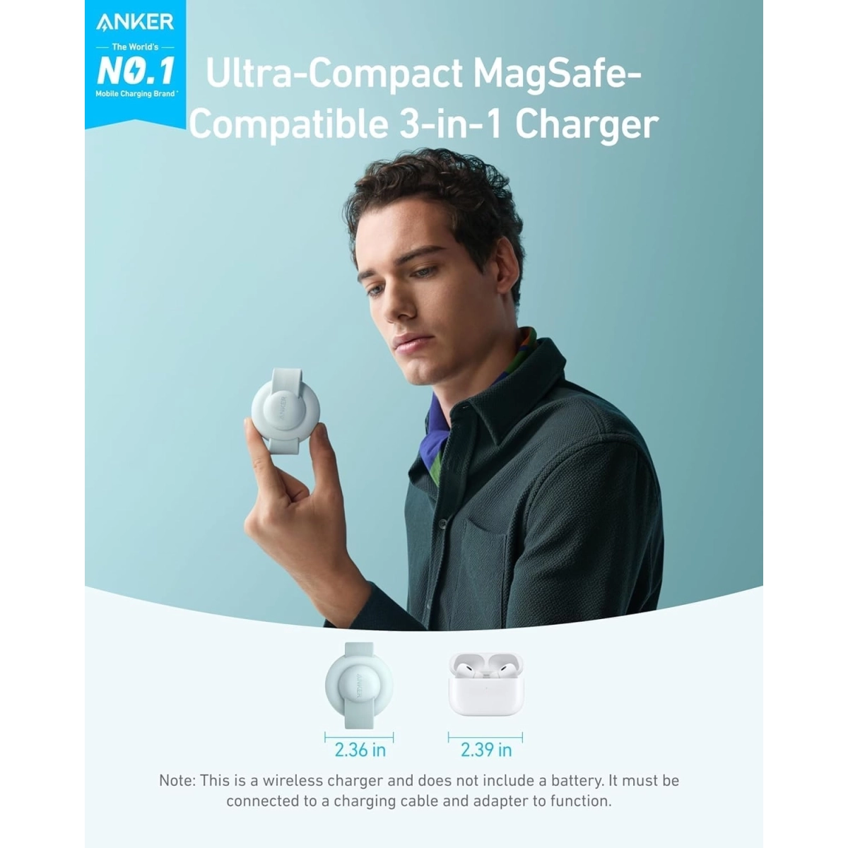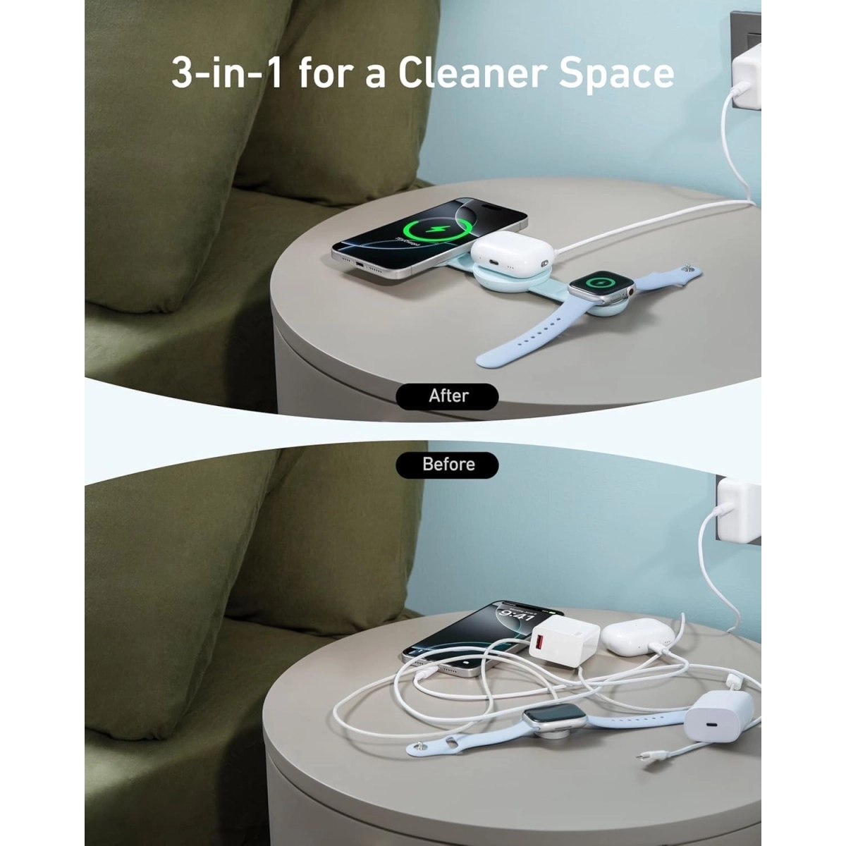 Anker MagGo 3-u-1 Foldable je elegantan i višenamenski bežični punjač koji omogućava istovremeno brzo punjenje iPhone-a, AirPods-a i Apple Watch-a.