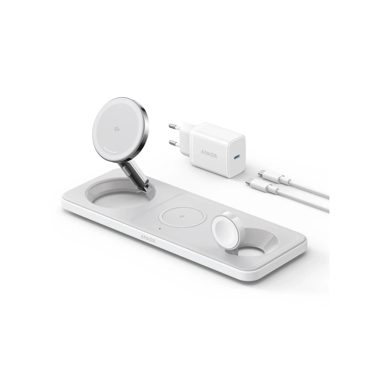 Ovaj 3-u-1 bežični punjač predstavlja praktično rešenje za organizovano i bezbedno punjenje više Apple uređaja ili Qi-kompatibilnih telefona i slušalica na jednom mestu. Dizajniran je tako da štedi prostor na stolu ili noćnom ormariću i omogućava lako postavljanje uređaja bez potrebe da se kablovi zakače i zakače svaki put.